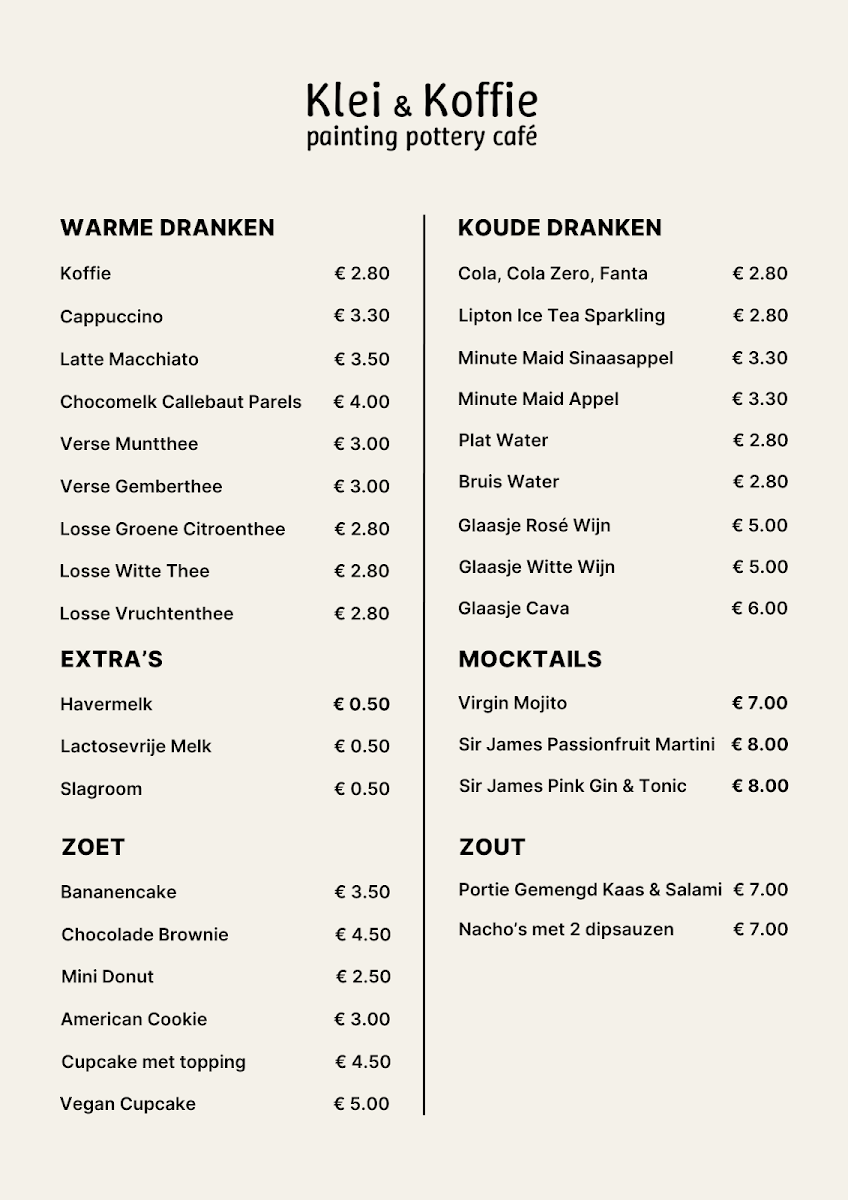 Klei en Koffie Menu